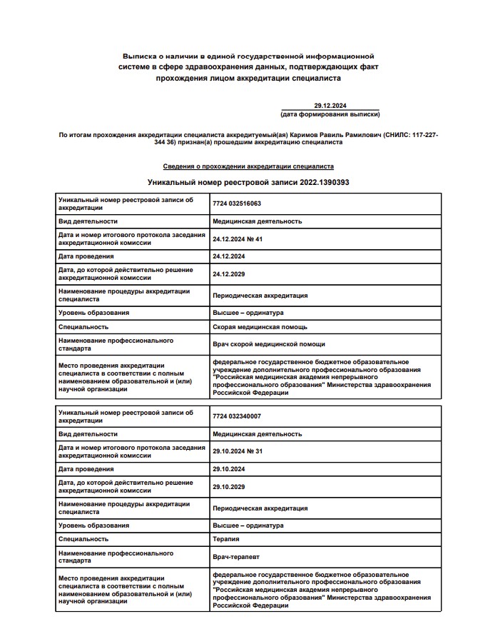 Врач-терапевт. Специалист с действующей аккредитацией по терапии, регулярно подтверждает профессиональную квалификацию в системе непрерывного медицинского образования.